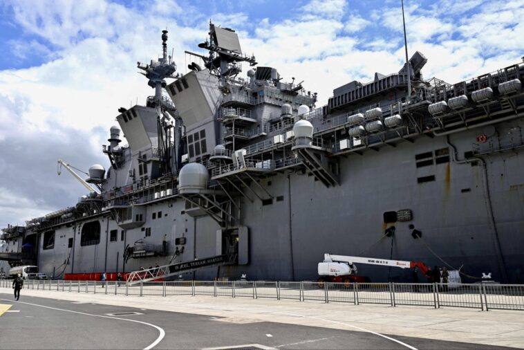 USS Tripoli, an America-class amphibious assault ship displacing 45,000 tons, is steaming from its forward base in Sasebo carrying the 31st Marine Expeditionary Unit: 2,500 Marines, up to 20 F-35B stealth fighters capable of vertical landing on its deck, MV-22 Ospreys, CH-53K heavy-lift helicopters, AH-1Z attack helicopters, and the ground combat element that makes an MEU the most versatile rapid-response force on Earth.
