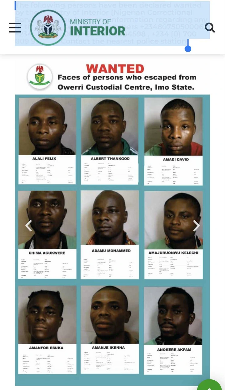 The Nigerian government, through the Ministry of Interior, has released a list of individuals who escaped from prisons and are now considered most wanted across the country.