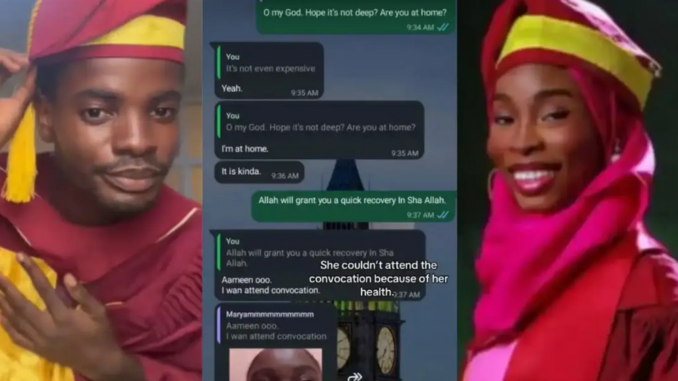 A University of Lagos graduate, Amah ThankGod, has taken to social media to mourn the tragic passing of his coursemate, Maryam Agoro, who reportedly died just a day after their convocation.