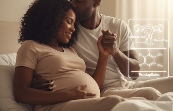 Leaking Amniotic Fluid: If her “water has broken” or is leaking, the protective barrier is gone, and nothing—including semen—should enter the vagina due to the high risk of infection.