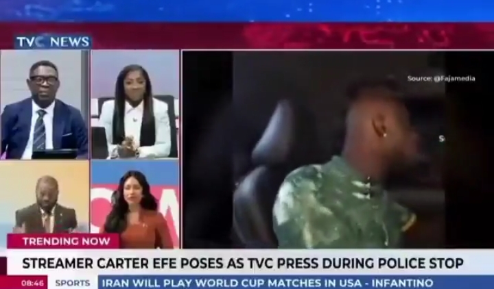 TVC News is set to take legal action against streamer Carter Efe over an alleged false claim that he identified himself as a staff member of the station at a police checkpoint.